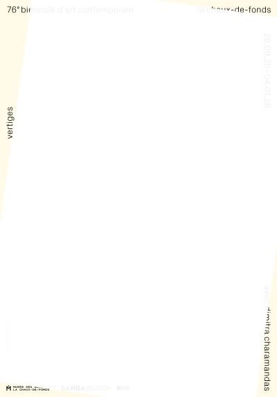 La 76e Biennale de la Société des amis du Musée des beaux-arts de La Chaux-de-Fonds (SAMBA) aura lieu du 28 septembre 2025 au 8 février 2026 avec un vernissage le 27 septembre 2025 à 17h. Elle porte le titre : Vertiges Vertige est un mot ambigu. Il témoigne d’une perte de repères. En cela, l’état du monde au bord de l’abîme nous saisit de vertige chaque matin, à l’écoute des nouvelles. C’est une sensation du corps qui se voit choir, du sol qui se dérobe. C’est un souffle qui se coupe. C’est aussi un envol, une ivresse, un désir fou que rien ne chasse, le vertige de l’amour. Pour expérimenter les vertiges, il faut avoir pris de la hauteur, garder les pieds sur terre et ne pas fermer les yeux. C’est le mal des éminences, l’intime tournis des solitudes perçu jusqu’au cœur des foules en fête. Membres du jury: Marius Quiblier, président du Jury – Curateur assistant Kunsthaus Langenthal Marie-Christine Gailloud-Matthieu – Dre.med. et curatrice indépendante Florence Grivel – Journaliste RTS Artemisia Romano – membre SAMBA Gabriel Grossert – membre SAMBA David Lemaire – Directeur Musée des beaux-arts La Chaux-de-Fonds (voix consultative) Artistes sélectionné·e·s: Josse Bailly; Ju Bretaudeau; Romain Buffetrille; Maciej Czepiel; Tan Chen; Louis Clerc; France Dépraz; Ligia Dias; Florent Dubois; Janel Fluri; Orélie Fuchs Chen; Amadeus Furrer; My name is Fuzzy; Élise Gagnebin-de Bons; Priska Gutjahr; Katharina Henking; Martin Jakob; Malik Jeannet; Yannick Lambelet; Philip Maire; Charlie Malgat; Achille Meier; Camille Mermet; Jon Merz; Corinne Odermatt; Jan Van Oordt; Camille Pellaux; Dany Petermann Boulala; Vincent Python; Colin Raynal; Romain Rochat; Alain Rufener; Victor Sala; Delphine Sandoz; Jessie Schaer; Christine Sefolosha; Sparga; Grégory Sugnaux; Tenko; Helio Thiémard; Rebecca Tinguely; Emilie Triolo; Alexandre Valette; Garance Willemin; Thibault Ziegler